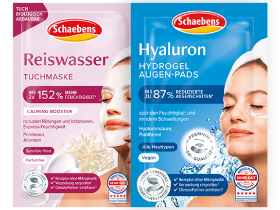 Zu einem rundum gesunden Leben gehört auch, sich öfter Zeit für sich zu nehmen und zu entspannen, zum Beispiel bei einem kleinen Beautyprogramm. Die Hyaluron Hydrogel Augen-Pads von Schaebens reduzieren Augenschatten und Schwellungen, während die Reiswasser Tuchmaske von Schaebens mit Panthenol und Allantoin Feuchtigkeit spendet und die natürliche Hautbarriere unterstützt – für ein ausgeglichenes Hautbild. Beide Produkte finden Sie bei Rossmann oder dm-drogerie markt. Beide Produkte finden Sie bei Rossmann oder dm-drogerie markt.