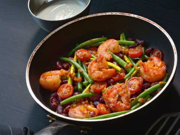 Pikante Garnelen-Bohnen-Pfanne