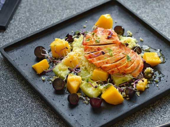 Scharfes Hähnchen auf fruchtigem Salat