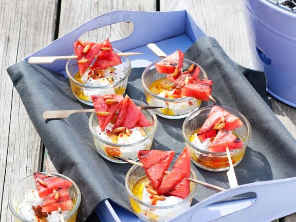 Sie haben bisher nur herzhafte Gerichte auf dem Grill oder in der Grillpfanne zubereitet? Dann wird es höchste Zeit, diese köstliche gegrillte Wassermelone mit aromatischem Macadamia-Melissen-Pesto zu probieren. Jetzt im Sommer können Sie das Dessert anstatt in der Pfanne selbstverständlich auf dem Rost zubereiten!