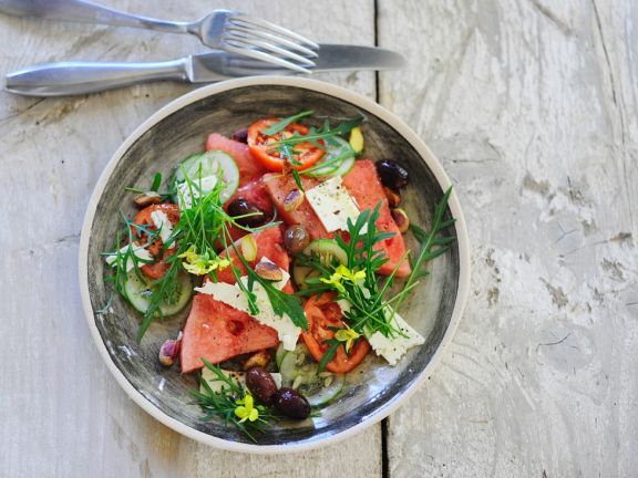 - Salat mit Gurke, Tomate, Wassermelone und Rucola