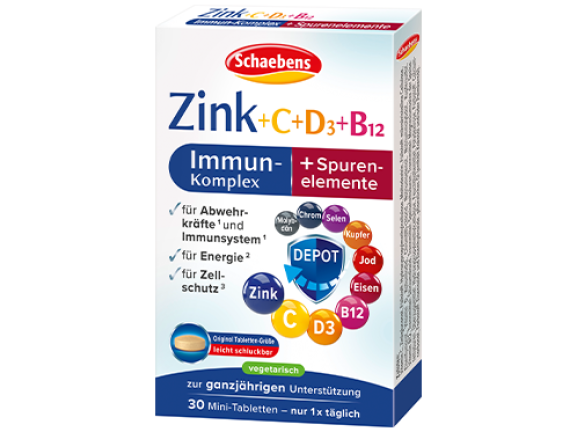 Damit unser Immunsystem gut funktioniert, muss es ausreichend mit Nährstoffen versorgt werden. Der Schaebens Zink Immun-Komplex unterstützt dabei mit einer speziellen Immun-Formel aus Zink, Vitamin C, D3 und B12 sowie essenziellen Spurenelementen, die für ein funktionierendes Immunsystem von größter Bedeutung sind. Den Zink Immun-Komplex finden Sie bei Rossmann oder dm-drogerie markt.