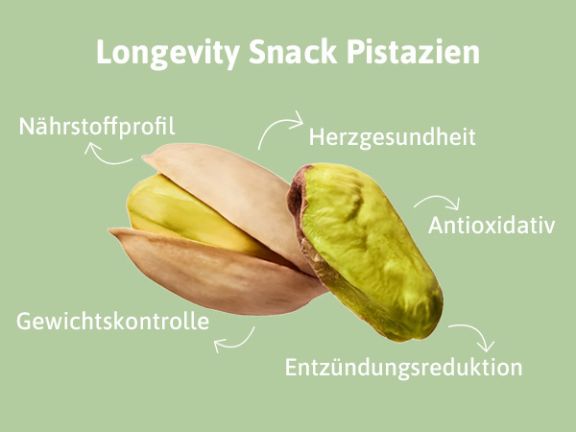 Noch mehr Informationen rund um Pistazien als Longevity-Snack und leckere Rezepte finden Sie in unserem Artikel: Longevity-Snack Pistazien: Gesund und vital bis ins Alter.