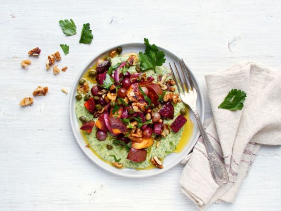 Wie lässt sich Joghurt in der Küche einsetzen und wie passt er in eine klimabewusste Ernährung? Wie funktioniert nachhaltige Milchwirtschaft? Und was macht Joghurt so besonders? Diese Fragen und noch viele mehr hat Expertin Nora Lahmann, Agrarwissenschaftlerin und Nachhaltigkeitsreferentin der Landesvereinigung der Milchwirtschaft Niedersachsen e.V. (LVN), in unserem Cook & Talk live auf Instagram beantwortet. Passend dazu hat EAT SMARTER-Chefredakteurin Iris Lange-Fricke praktische Küchentipps rund um das Milchprodukt gegeben und ofengeröstetem Gemüse auf Kichererbsen-Joghurt-Sauce, Walnüssen & Kapern zubereitet.