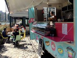 für seine ausgefallenen Hotdog-Variationen. „Wir erfinden den amerikanische Hotdog neu, ergänzen ihn mit raffinierten Produkten und dem Know-how der französischen Küche“, sagen die Inhaber Thomas und Loïc. Und so landen hier auch schon mal Büffelmozzarella, Feigen und in Weißwein geschmorte Zwiebeln auf der Wurst. „Le French Kiss“, „Le Big Sausage“ und „Le Veggie Love“ heißen die Kreationen, die über die Theke gehen – und denen niemand widerstehen kann. Den wochenaktuellen Standplan des