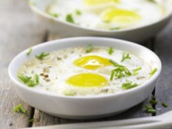 Gebackene Wachteleier in Sojacreme mit Trüffelöl. Das Rezept zum Nachkochen gibt es hier.