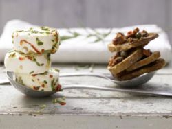 Ziegenkäsetaler mit Oliven-Tomaten-Tapenade. Hier gehts zum Rezept.