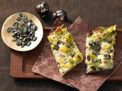 Kartoffel-Lauch-Kuchen mit Kürbiskernen. Eine Tarte wie diese darf natürlich bei den französischen Rezepten nicht fehlen.