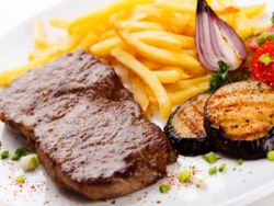 Ein französischer Klassiker: auf den Punkt gegrilltes Steak mit Pommes frites.