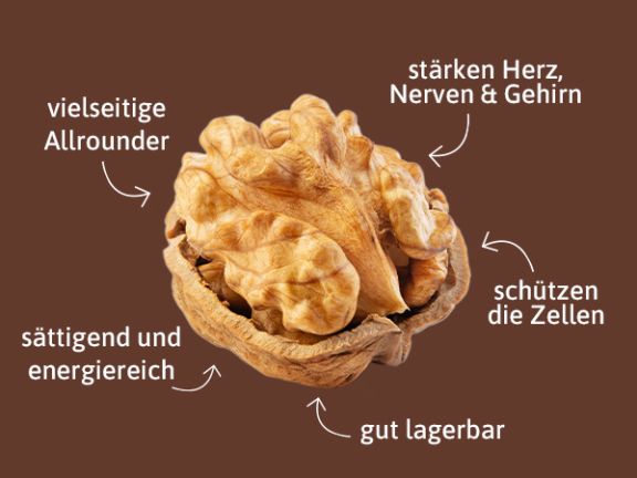 Nüsse sind generell ein wertvoller Bestandteil einer ausgewogenen Ernährung. Auch Walnüsse tragen maßgeblich dazu bei und bringen jede Menge wertvoller Nährstoffe mit sich: