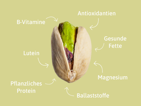 Umweltfaktoren wie UV-Strahlung oder Schadstoffe, sogenannter oxidativer Stress, kann unseren Zellen schaden. Antioxidantien wie Vitamin E oder Polyphenole, die in Pistazien enthalten sind, können diese Zellschäden reduzieren. Das wirkt sich auf den ganzen Körper aus, vom Immunsystem bis hin zu unserer Haut.