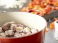 Mit Brühe und Pizzatomaten auffüllen und aufkochen. Zugedeckt bei mittlerer Hitze unter mehrmaligem Rühren 20 Minuten garen. Serbisches Reisfleisch mit Salz und Pfeffer abschmecken und sofort servieren.