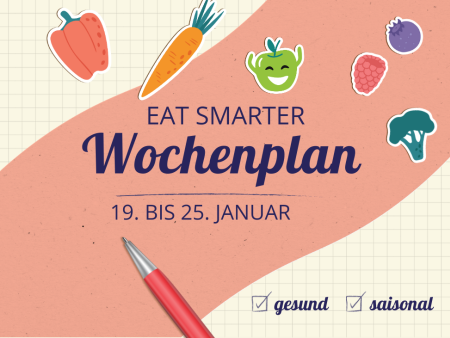 Sind Sie auf der Suche nach köstlicher und vor allem abwechslungsreicher Inspiration? Dann haben wir etwas für Sie: Dank unserer EAT SMARTER Wochenpläne stehen Sie nicht jeden Tag vor dem Kühlschrank und überlegen, was Sie aus den vorhandenen Zutaten zaubern können. Freuen Sie sich jeden Sonntag über einen aktuellen Plan für die nächste Woche. So können Sie sich direkt eine Einkaufsliste schreiben. Das spart nicht nur Zeit im stressigen Alltag, sondern auch Geld, denn Sie gehen gezielt in den Supermarkt und Spontankäufe werden reduziert.