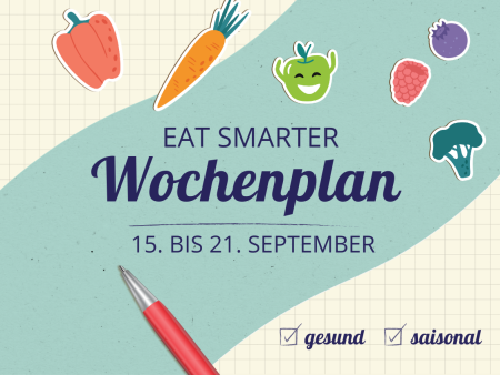 Sind Sie auf der Suche nach köstlicher und vor allem abwechslungsreicher Inspiration? Dann haben wir etwas für Sie: Dank unserer EAT SMARTER Wochenpläne stehen Sie nicht jeden Tag vor dem Kühlschrank und überlegen, was Sie aus den vorhandenen Zutaten zaubern können. Freuen Sie sich jeden Sonntag über einen aktuellen Plan für die nächste Woche. So können Sie sich direkt eine Einkaufsliste schreiben. Das spart nicht nur Zeit im stressigen Alltag, sondern auch Geld, denn Sie gehen gezielt in den Supermarkt und Spontankäufe werden reduziert.